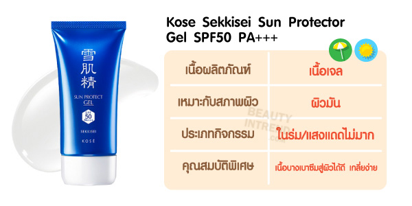 - Kose Sekkisei Sun Protector Gel SPF50 PA+++