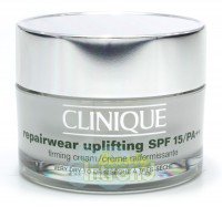 CliniqueRepairwear Uplifting SPF 15 PA++ Firming Cream Very Dry To Dryเพื่อผิวที่ต้องการดูแลที่มากกว่า Repairwear Uplifting Firming Cream สำหรับผิวแห้ง ถึงแห้งมาก ช่วยปรับระดับความชุ่มชื่นของผิวให้มีความสมดุล เก็บกักความชุ่มชื่นได้นานยิ่งขึ้น และด้วยส่วนผสมจาก Peptide ให้ผิวแข็งแรง เรียบเนียนขึ้น ริ้วรอยดูตื้น เส้นริ้วดูลดลง ด้วยส่วนผสมพิเศษเสริมสร้างเส้นใยที่มองไม่เห็นช่วยประคองผิว ให้ความรู้สึกของผิวที่ยกกระชับและแน่นขึ้น พร้อมปกป้องผิวจากรังสี UVA/UVB ด้วยค่า SPF15 สาเหตุหนึ่งของการเกิดริ้วรอย Repairwear Uplifting Firming Cream SPF 15 เข้าฟื้นบำรุงได้อย่างเต็มประสิทธิภาพอย่างอ่อนโยน โดยผ่านการทดสอบการแพ้และปราศจากน้ำหอม 100 % จึงใช้ได้แม้ผิวบอบบางแพ้ง่าย วิธีใช้ บำรุงผิวบริเวณผิวหน้าและลำคอ เป็นประจำทุกเช้า เพื่อสัมผัสของผิวที่แตกต่าง การบำรุงผิวเป็นเพียงส่วนหนึ่งของผิวที่แข็งแรงอ่อนกว่าวัย ผิวควรได้รับการบำรุงจากภายใน การรับประทานอาหารที่มีประโยชน์ครบ 5 หมู่ หลีกเลี่ยงมลภาวะความเครียด ควันบุหรี่ ดิื่มน้ำสะอาดและพักผ่อนใหม่เพียงพอ แล้วผิวสวยแข็งแรงจะอยู่กับเราไปอีกนาน